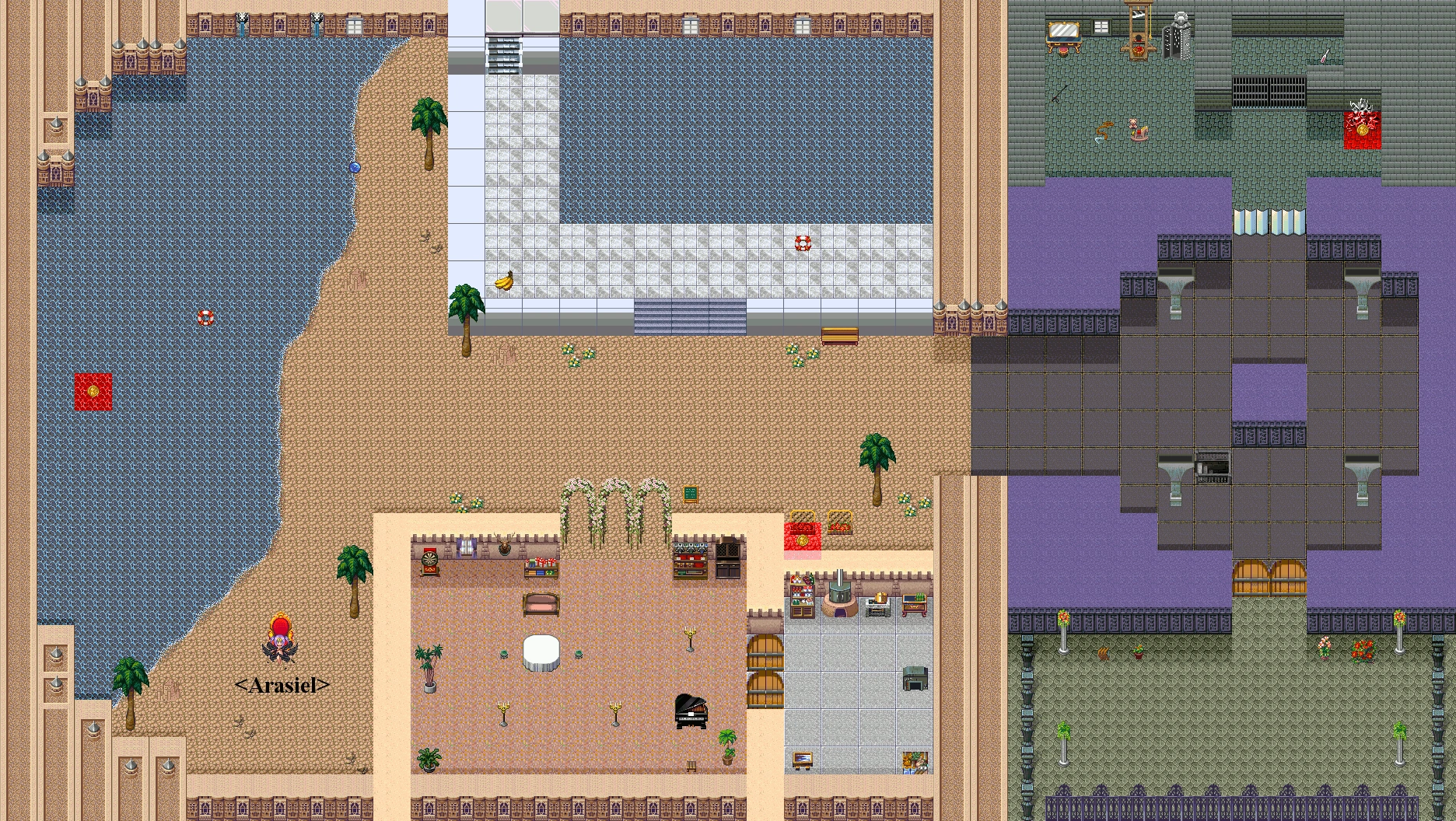 - <Arasiel>: Appearing as the evolved version of a black angel, she sits on her throne in the lower left corner. She is even more dangerous than the other gods on the continent, so be very prepared before you pick a fight with her.
