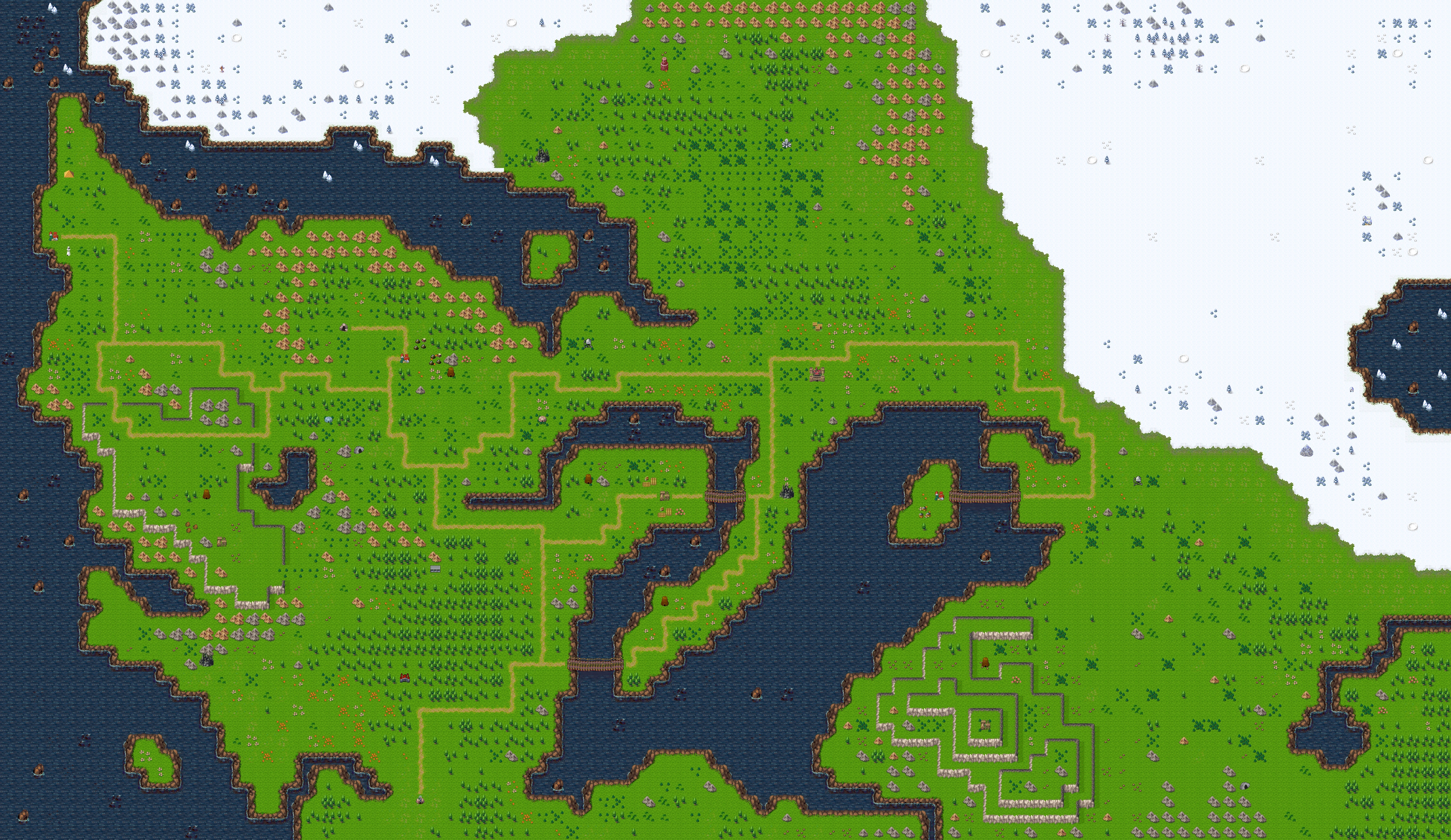 North Tyris includes two snowy areas, notably the north-eastern one surrounding Noyel. Snow is twice as time-consuming to traverse as other types of terrain.